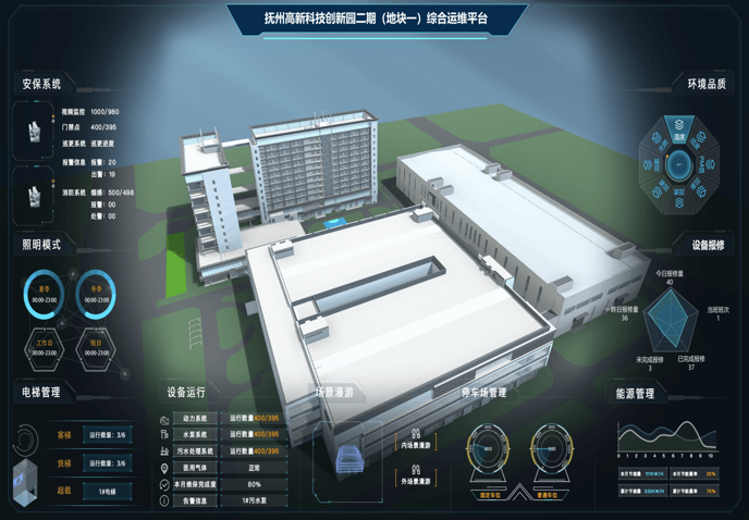 采用物联网整体架构,利用云端服务作为集中管控中心,以BIM模型为载体统一整合,提供一个建筑运维的综合性平台。